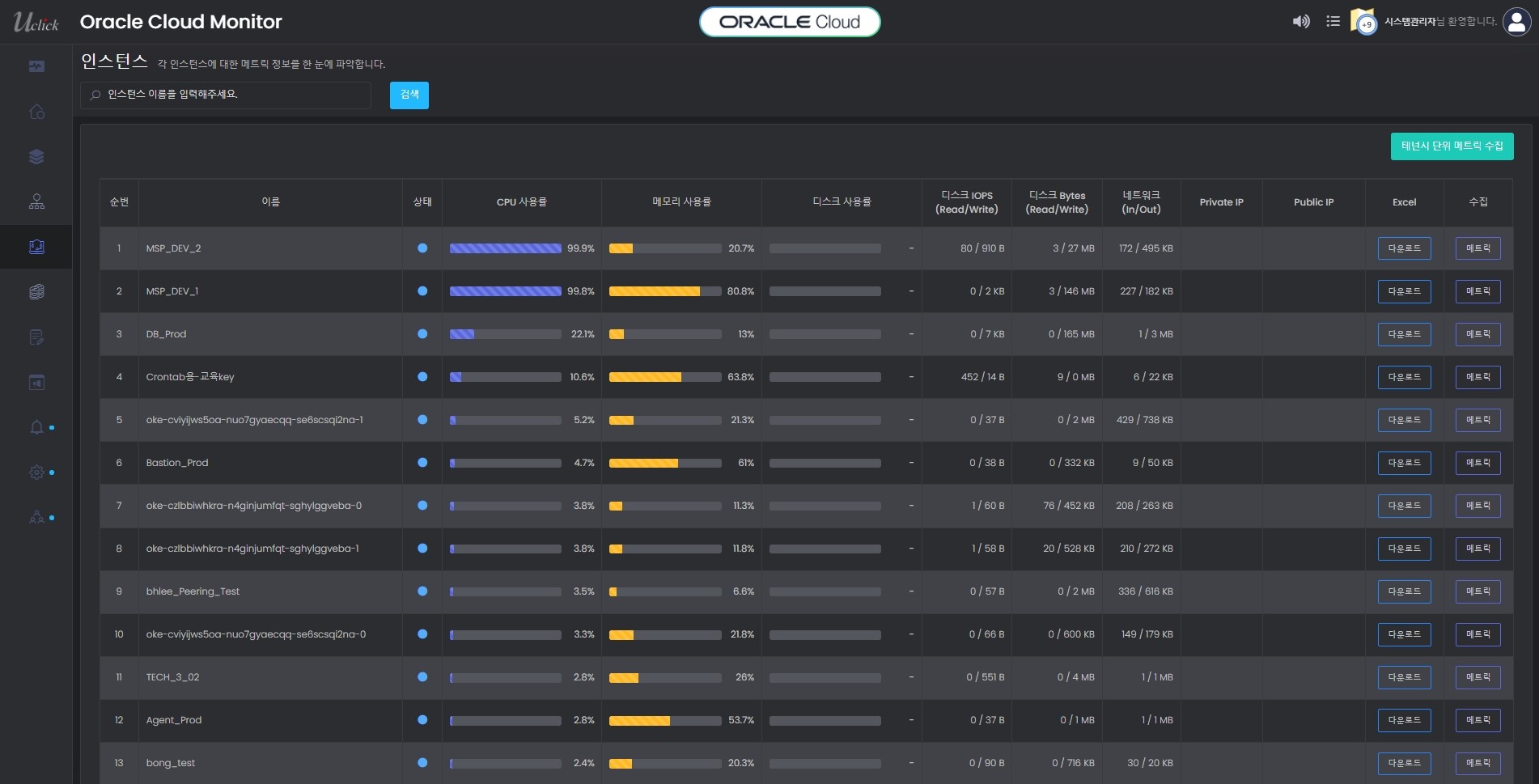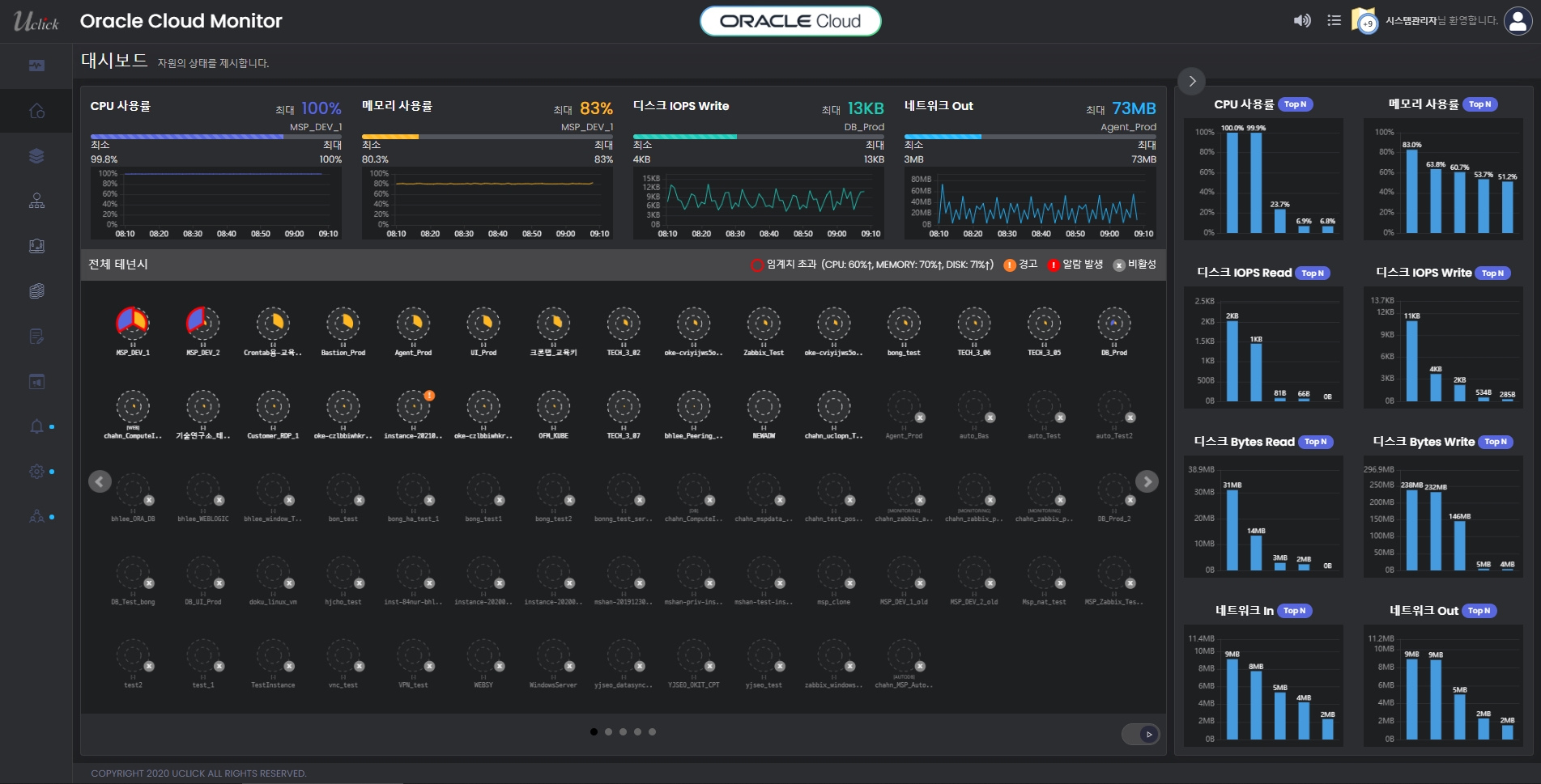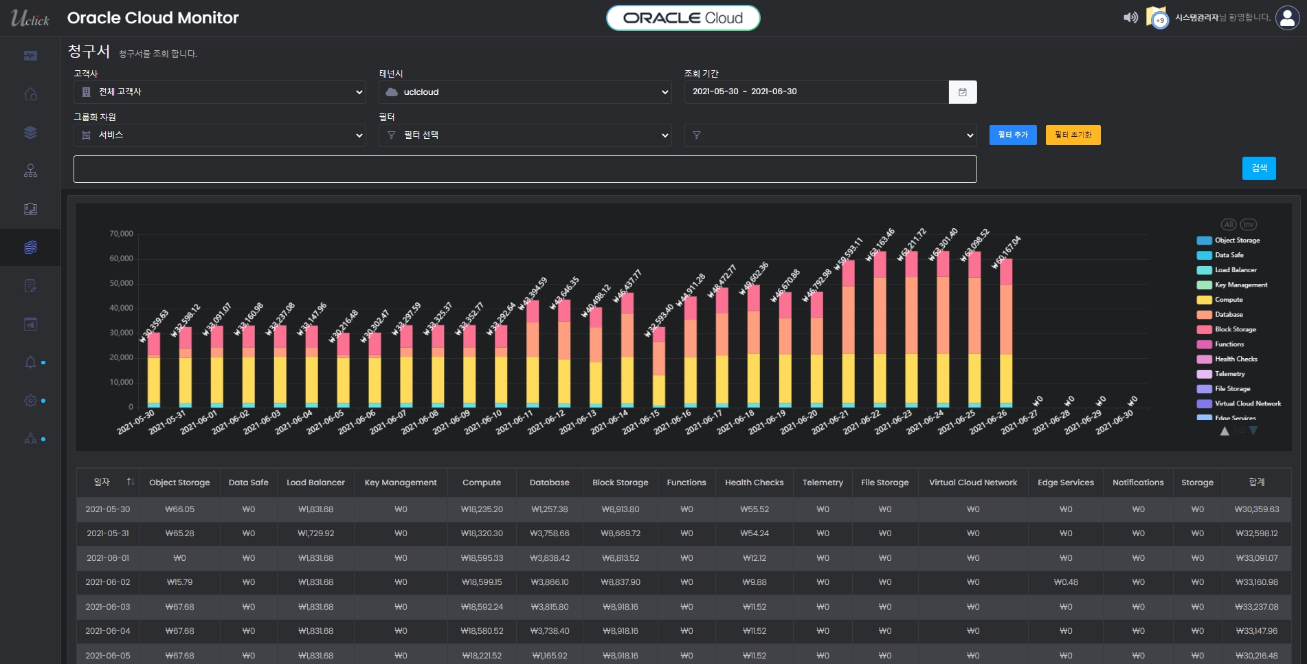 uCMP는 클라우드 관리를 위해 상시 모니터링, 튜닝 및 패치 적용, 장애 관리 및 운영, 컨설팅, 교육, 빌링, 리포트 등을 지원합니다.